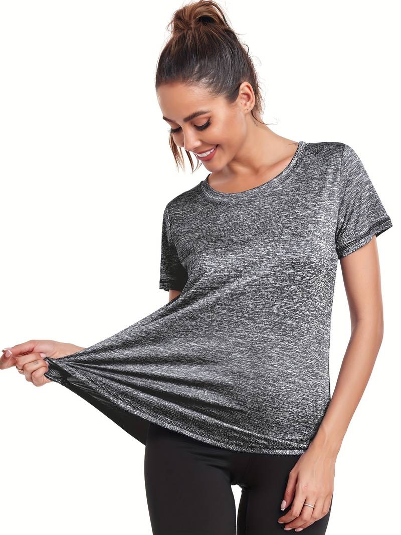 Women's Short Sleeve, Quick Drying Workout Shirts, Crew Neck Sports Yoga Running Split Tee, Women's Clothing